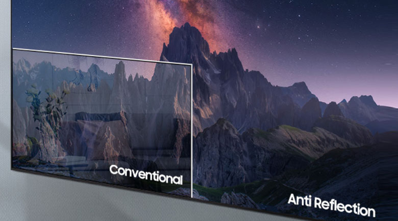 Loại bỏ tối đa các ánh sáng bên ngoài như: Ánh nắng, ánh đèn,... nhờ công nghệ Anti-Reflection. Người dùng có thể xem tivi Samsung thoải mái ở bất kì thời gian nào mà không hề bị xao nhãng.