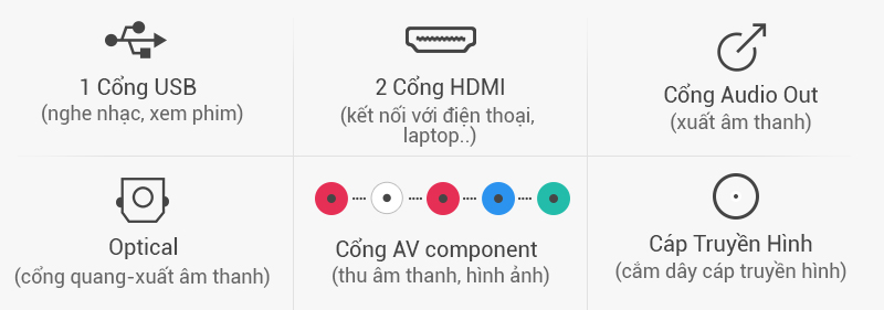 Còn nếu muốn kết nối tivi với dàn máy, loa, đầu đĩa bạn có thể dùng cổng Optical, AV Component...