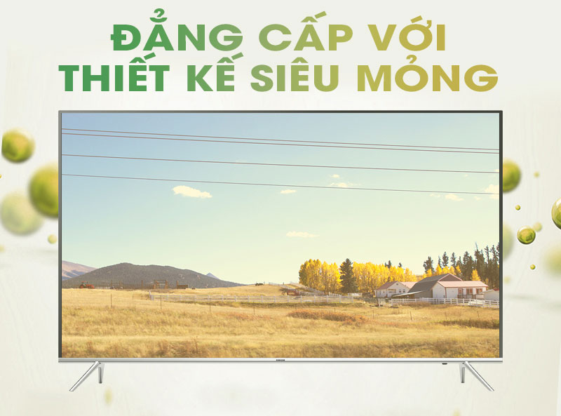Tivi 49 inch kích thước thanh mảnh (phần dày nhất 4.34 cm), viền màn hình cực mỏng (chỉ 0.5 cm) cùng chân đế sáng bóng ấn tượng sẽ đem đến cho ngôi nhà của bạn vẻ đẹp sang trọng.