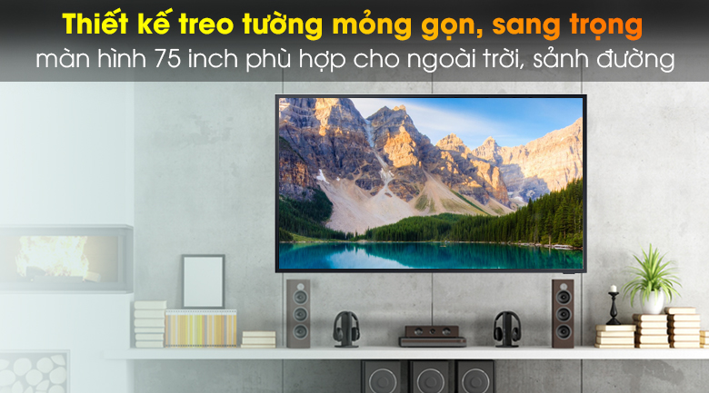 Kích thước tivi Samsung 75 inch có thể bày trí ở trong nhà, phòng khách và đặc biệt là bố trí ở ngoài trời là vô cùng hợp lí.