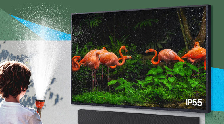 Tivi có khả năng chống chịu bền bỉ với điều kiện thời tiết ngoài trời, kháng nước và kháng bụi đạt chuẩn IP55. Nhờ tính năng này, tivi sẽ được vận hành mạnh mẽ, bền bỉ dưới điều kiện thời tiết ngoài trời và được bảo vệ tối ưu khỏi các nhân tố bên ngoài như: độ ẩm, bụi bẩn và nhiệt độ mà không lo gặp vấn đề hư hại.