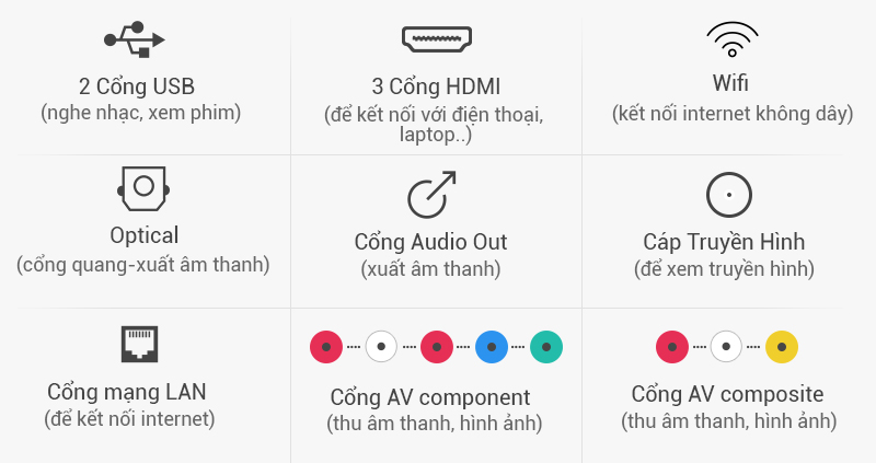 Tivi cho phép kết nối với USB, đầu đĩa, máy tính, dàn âm thanh… Ngoài ra, tivi cũng hỗ trợ kết nối chuột, bàn phím (có dây và không dây) để bạn thao tác dễ dàng hơn.