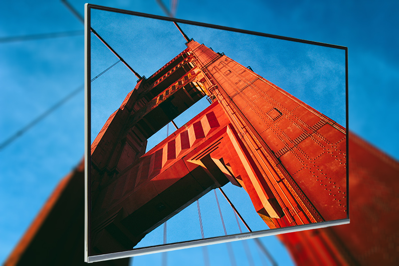 Tivi sử dụng công nghệ tấm nền Nano GLED với những hạt tinh thể siêu nhỏ, giúp màn hình tivi cực kì mỏng. Thêm vào đó, đèn nền được rải đều khắp màn hình sẽ khắc phục tình trạng hở sáng.