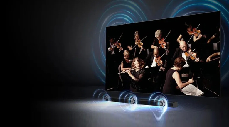 Công suất 20W, công nghệ Q-Symphony kết hợp loa tivi và loa thanh tạo nên công suất loa lớn, vang dội, nghe nhạc, xem phim cuốn hút hơn.