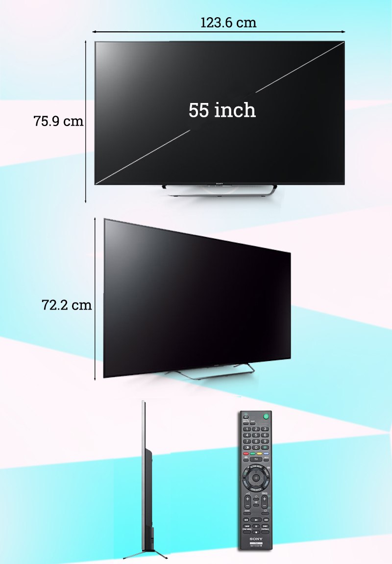 Đồng thời, chân đế tivi thanh mảnh, trang nhã nhưng không kém phần chắc chắn giúp tivi Sony 55 inch đứng vững ở bất kỳ bề mặt nào.