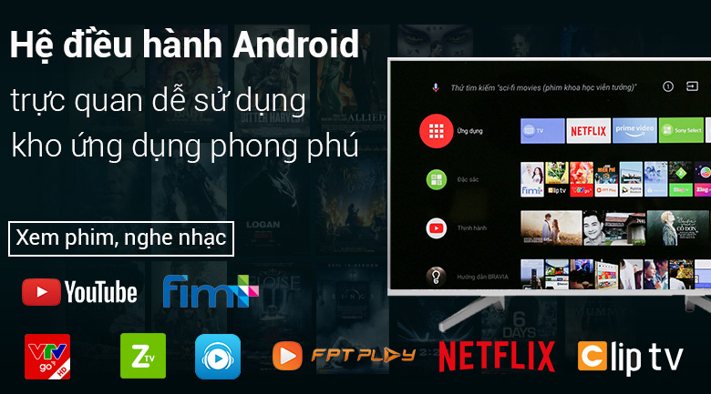 Hệ điều hành Android 8.0 của Android tivi Sony mượt mà, uyển chuyển, giao diện đẹp mắt, người dùng có thể sử dụng dễ dàng.