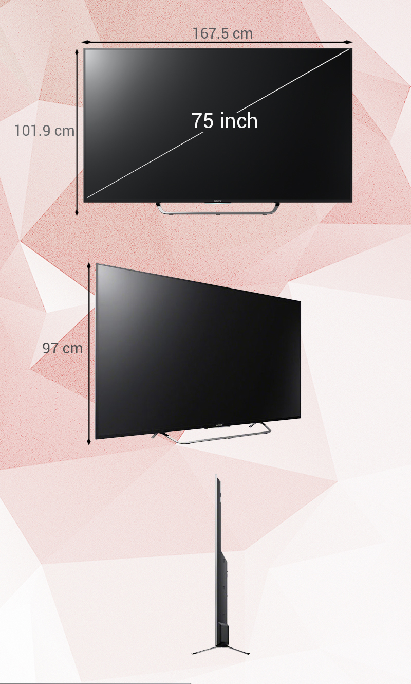 Chân đế thanh mảnh vừa tạo nên một tổng thể đẹp mắt mà còn giúp mang đến một bệ đỡ chắc chắn cho màn hình 75 inch của tivi. Màn hình lớn phù hợp với những khôn gian rộng rãi như phòng khách lớn, phòng họp,…