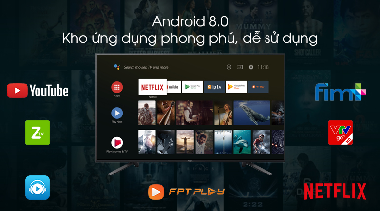 Với kho ứng dụng phong phú đến từ Google Play, bạn có thể thỏa sức tải những ứng dụng để giải trí xem phim như FPT Play, Clip TV, MyTV, Zing TV,...