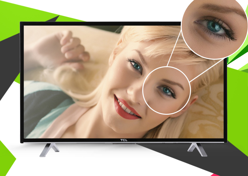 Tivi được TCL trang bị độ phân giải HD trang bị tính năng giảm nhòe, nhiễu hình để hình ảnh không chỉ sắc nét mà còn trong trẻo, mịn màng. Thêm nữa là khả năng nâng cao độ tương phản và hiển thị màu sắc đa dạng, phù hợp với người dùng có nhu cầu mua tivi màu sắc rực rỡ.