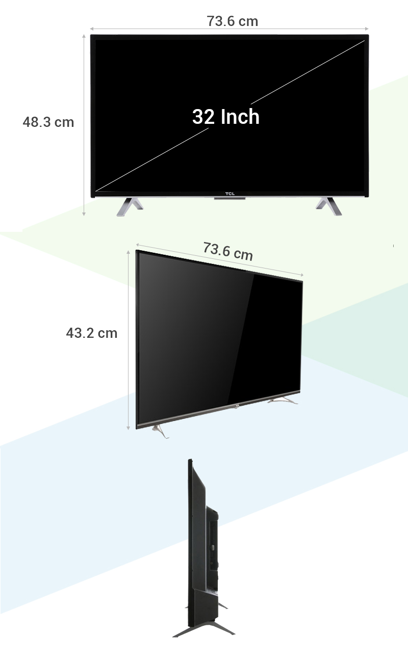 Tivi TCL 32 inch gọn gàng, phù hợp để bố trí ở nhiều dạng không gian như phòng khách nhỏ, phòng làm việc, phòng ngủ…