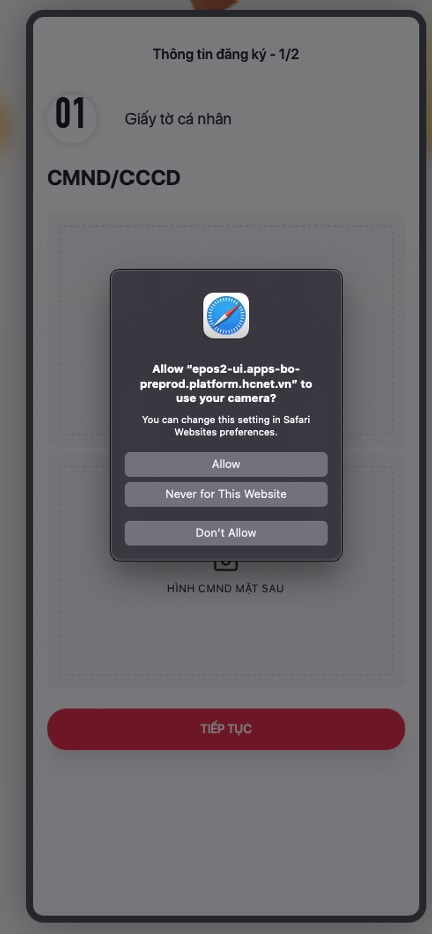 - Bước 5: Click “Tiếp tục” để chuyển đến màn hình chụp CMND/CCCD