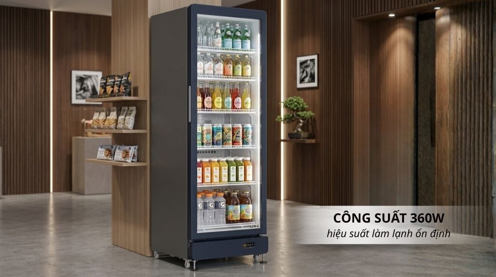 Với dung tích sử dụng 500 lít, tủ đáp ứng tốt nhu cầu bảo quản số lượng lớn thực phẩm, phù hợp cho cửa hàng tạp hóa, siêu thị mini hoặc quán nước. Thiết kế 1 ngăn mát rộng rãi giúp sắp xếp linh hoạt nhiều loại sản phẩm khác nhau.
