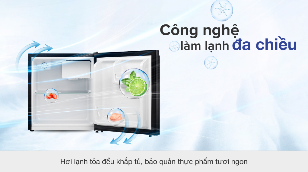 - Làm lạnh đa chiều nên hơi lạnh được thổi ra đồng đều mọi góc trong ngăn tủ, nhờ đó mà thực phẩm được bảo quản tốt hơn, luôn giữ được sự tươi ngon như lúc mới mua về.
