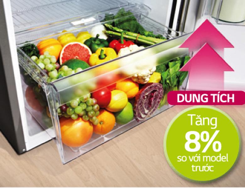 Tủ lạnh trang bị ngăn đựng rau quả với dung tích lớn đến 20 lít giúp bạn hạn chế tối đa số lần đi chợ trong tuần mà vẫn có thể dự trữ được rất nhiều rau củ quả để dùng từ từ. Đặc biệt ngăn rau quả có khả năng tự cân bằng độ ẩm và giữ cho rau quả tươi ngon lâu nhất.