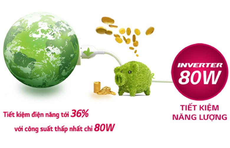 Tủ lạnh LG sử dụng công nghệ Inverter với máy nén bền bỉ giúp gia đình bạn tiết kiệm điện năng đến 36% với công suất thấp nhất chỉ 80W. Tủ lạnh Inverter còn vận hành êm ái và rất thân thiện với môi trường (Tủ lạnh Inverter là gì?)