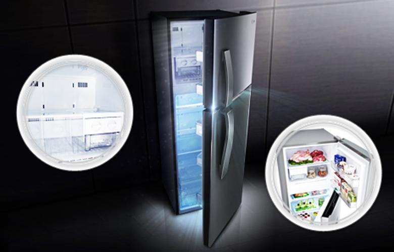 Tủ lạnh LG tạo ra luồng khí lạnh và cung cấp tới mọi ngóc ngách giúp duy trì độ lạnh đồng đều và hạn chế tối đa hoạt động của máy nén. Thực phẩm của bạn sẽ được bao bọc bởi luồng khí lạnh đa chiều và sẽ lâu bị hỏng thậm chí luôn tươi ngon như lúc mới mua về (Công nghệ làm lạnh trên tủ lạnh LG)