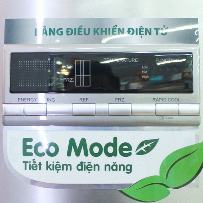 Không chỉ vậy, tủ còn được trang bị tính năng Eco Mode thông minh. Khi bạn kích hoạt Eco Mode, tủ lạnh sẽ chuyển sang chế độ vận hành tiết kiệm điện và hiển thị qua màn hình LED bên ngoài. Nhờ đó, bạn không còn phải lo lắng về tiền điện nhưng vẫn sử dụng được hết chức năng của tủ lạnh.