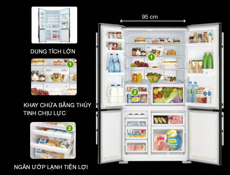 + Ngăn lạnh: Ngăn lạnh với dung tích cực lớn cho phép người dùng bảo quản nhiều loại thực phẩm khác nhau cùng với các ngăn chứa đa dạng và được làm bằng kính chịu lực để tiện cho người dùng phân loại thực phẩm cũng như yên tâm hơn khi sử dụng và tăng độ bền cho tủ lạnh. Cùng với đó, các ngăn này còn dễ dàng tháo rời một cách linh hoạt sao cho phù hợp với nhu cầu và sở thích của mình.