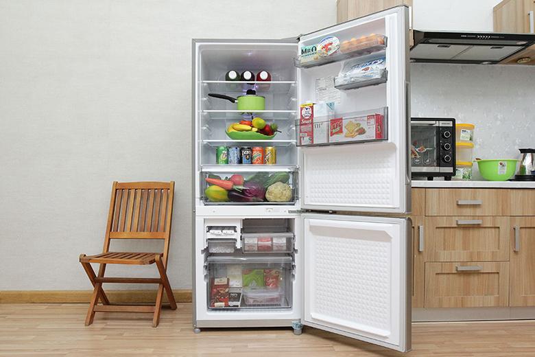 + Dung tích 265 lít: Dung tích lớn với ngăn mát chiếm 193 lít và ngăn đá 72 lít tạo điều kiện thuận lợi để bạn và gia đình có thể dự trữ được khối lượng thực phẩm trong nhiều ngày mà không phải lo lắng.