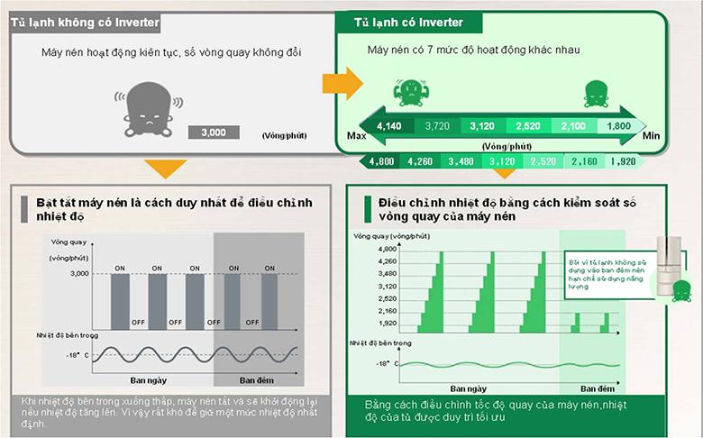 + Cảm biến Econavi: Cảm biến thông minh có khả năng ghi nhận các thông số như ánh sáng, tần suất đóng/mở tủ, nhiệt độ môi trường ngoài từ đó phân tích và cho duy trì tủ lạnh ở một nhiệt độ phù hợp sao cho mang lại hiệu quả làm lạnh những vẫn tiết kiệm tối đa điện năng.