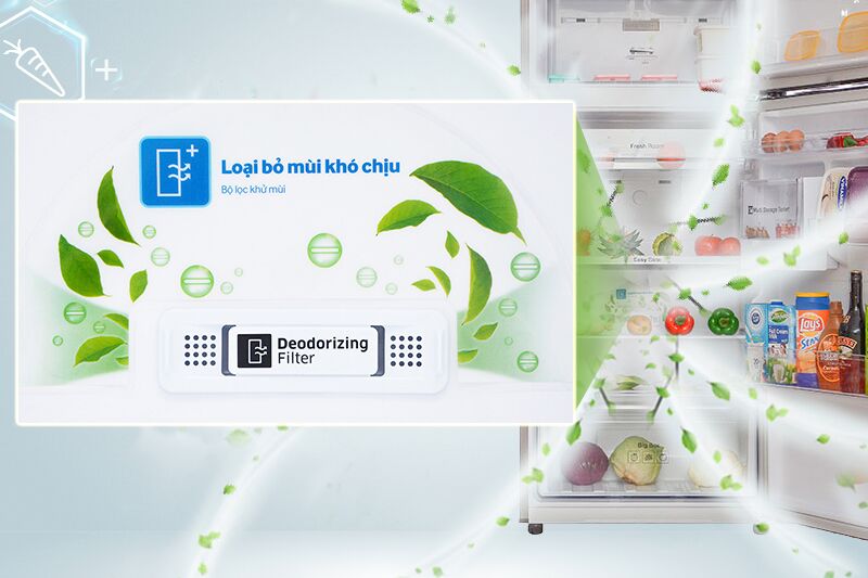 Bộ lọc được gắn trên cánh quạt của tủ lạnh Samsung RT35FDACDSA sẽ thanh trùng, khử mùi tối ưu cho nó, ngăn cản các sự ám mùi khó chịu.