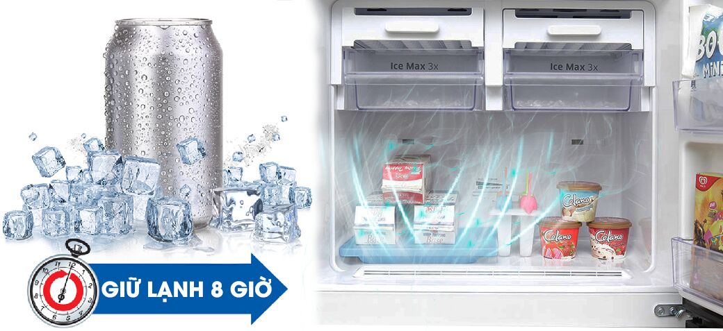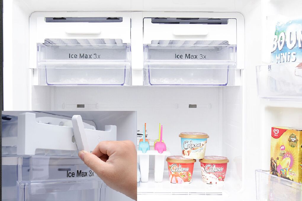 khay ngăn đá khá là rộng có 2 khay đá xoăn tha hồ làm đá, mùa nóng đến gia đình sử dụng đá rất nhiều, tủ có thể đảm nhận đươc.