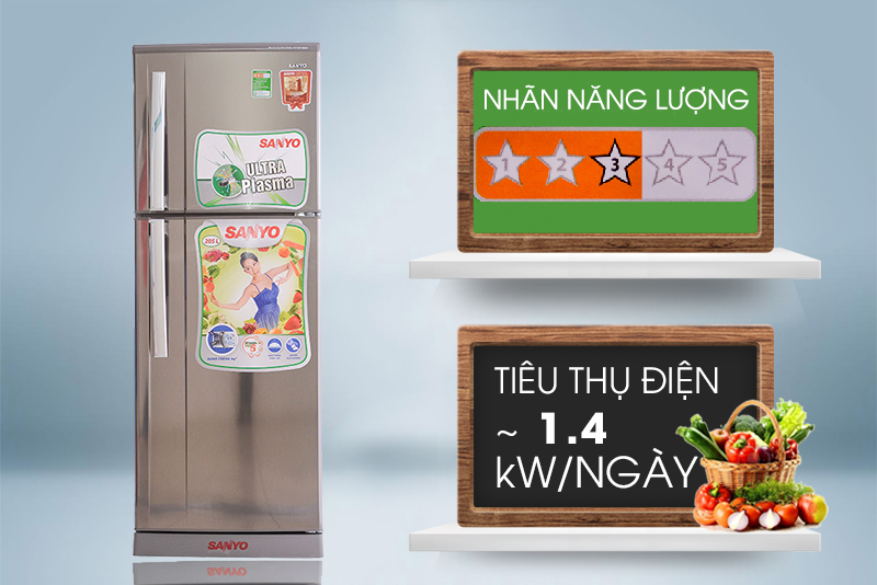 Tủ lạnh Sanyo SR-P205PN được xếp hạng năng lượng 3 sao, có thể nói chiếc tủ lạnh này tiêu thụ điện ở mức độ trung bình. Mỗi ngày chiếc tủ lạnh Sanyo SR-P205PN sẽ tiêu tốn của gia đình bạn khoảng 1,4 kW/ngày.