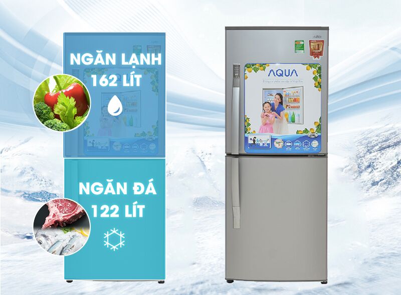 ngăn đá và ngăn mát đồng đều nhau cũng tiện mà đôi khi mình bỏ thực phẩm nhiều thì không đủ chỗ để.