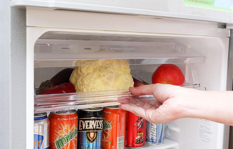 Ngoài ra bên cánh tủ còn trang bị các ngăn đựng chai lọ có không gian lớn giúp bạn thoải mái đặt các loại chai lọ nước giải khát một cách gọn gàng.