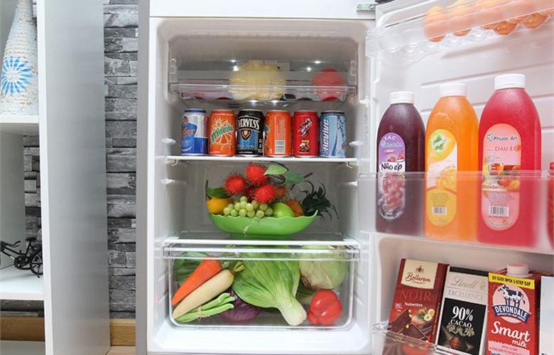 Tủ lạnh thích hợp cho gia đình có 3 thành viên với tổng dung tích 165 lít. Ngăn lạnh có dung tích 109 lít đáp ứng nhu cầu dự trữ thực phẩm để chế biến các bữa ăn hằng ngày cho gia đình, ngăn đá có dung tích 56 lít giúp bạn có nguồn đá lạnh để giải khát hoặc dùng để bảo quản kem hay thực phẩm đông lạnh.