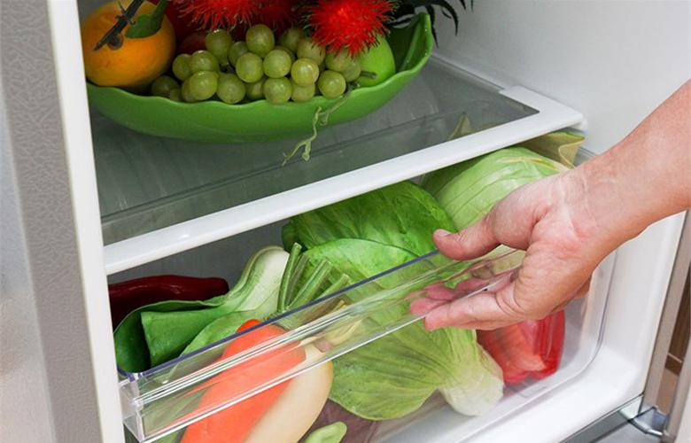 Khi mua các loại rau củ có kích thước và khối lượng lớn, bạn có thể dễ dàng xếp chúng gọn vào trong ngăn rau quả phía dưới tủ. Ngăn này có dung tích lớn nên có thể chứa nhiều rau quả giúp bạn thoải mái dự trữ và không cần phải đi mua sắm quá nhiều lần (Bí quyết bảo quản thực phẩm an toàn trong tủ lạnh).
