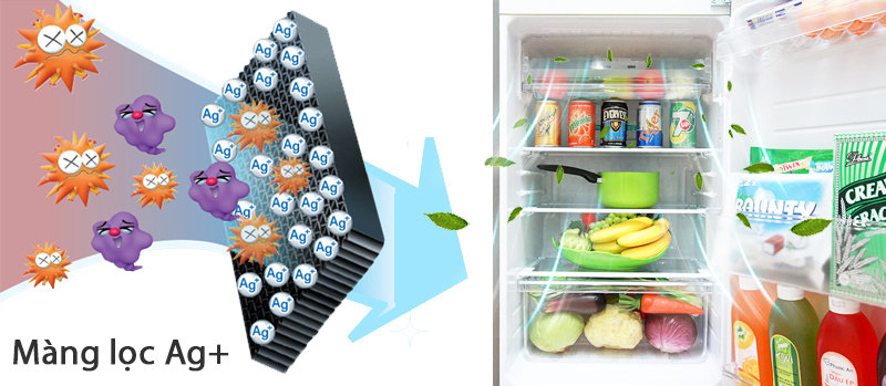 Bộ lọc khử mùi phân tử bạc Nano Ag+ của tủ lạnh Sharp SJ-191E-SL sẽ lọc sạch vi khuẩn, mùi hôi, khi dòng khí lạnh đi qua. Đồng thời ngăn chặn không cho chúng phát triển lại, đảm bảo cho tủ thoáng mát, không bám mùi hôi.