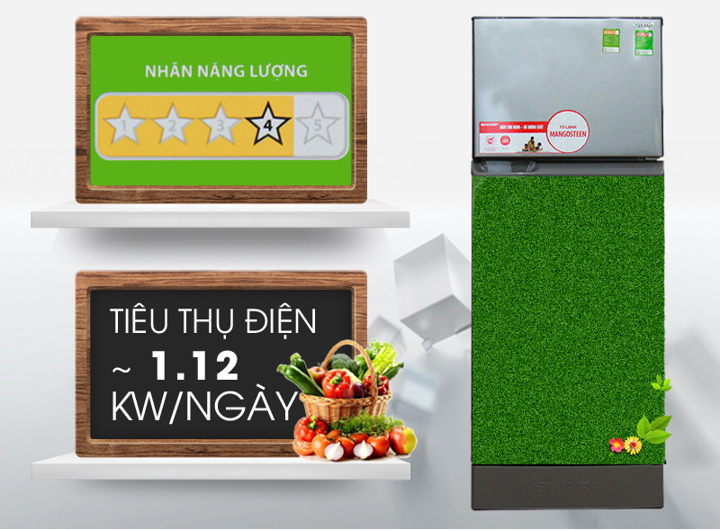 Được xếp hạng năng lượng 4 sao, tủ lạnh Sharp SJ-191E-SL tiết kiệm điện ở mức khá trong phân khúc thị trường tủ lạnh dung tích nhỏ. Trung bình chiếc tủ lạnh này sẽ tiêu tốn của bạn khoảng 1,12 kW/ngày.