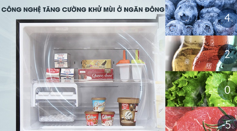 Ngăn đông của chiếc tủ lạnh inverter này được trang bị công nghệ khử mùi cực kỳ hiện đại, bạn sẽ không còn lo về vi khuẩn hay vấn đề ám mùi giữa các thực phẩm với nhau nữa.