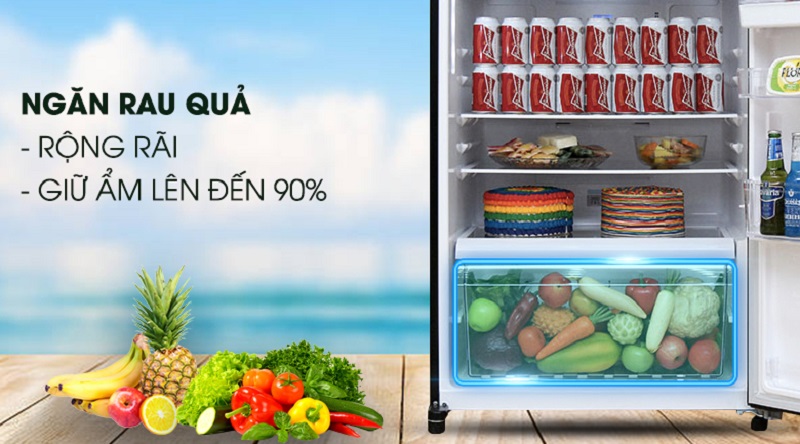 Chiếc tủ lạnh Toshiba inverter này còn có ngăn chứa rau củ với kích thước lớn tạo không gian rộng rãi cho tất cả các loại trái cây và rau củ, và khả năng giữ ẩm lên đến 90% giúp rau củ quả được tươi ngon lâu hơn.