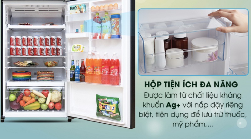 Cửa tủ lạnh được thiết kế thêm một ngăn riêng đa năng có nắp đậy, góc mở rộng và có Ag+ kháng khuẩn giúp bạn có thể bảo quản chuyên biệt các loại chai lọ, thuốc, dược phẩm, mỹ phẩm mà không lo nhiễm khuẩn.