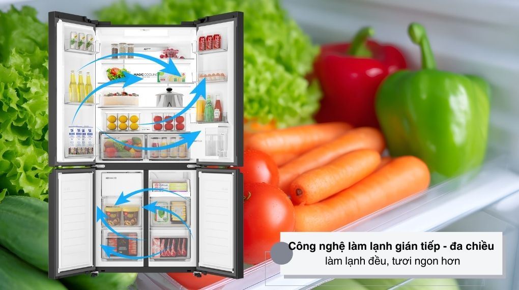 • Công nghệ làm lạnh đa chiều cho hơi lạnh phân bổ đồng đều khắp không gian tủ.