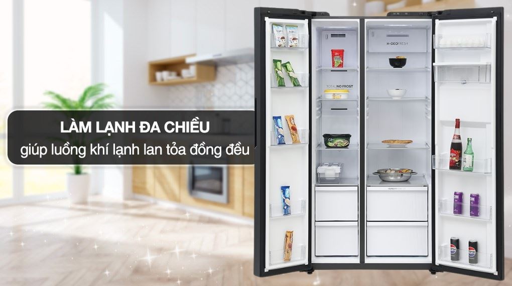- Làm lạnh gián tiếp và làm lạnh đa chiều giúp duy trì hơi lạnh ổn định, tránh tình trạng đóng tuyết, giữ nhiệt đều trong mọi ngăn tủ.