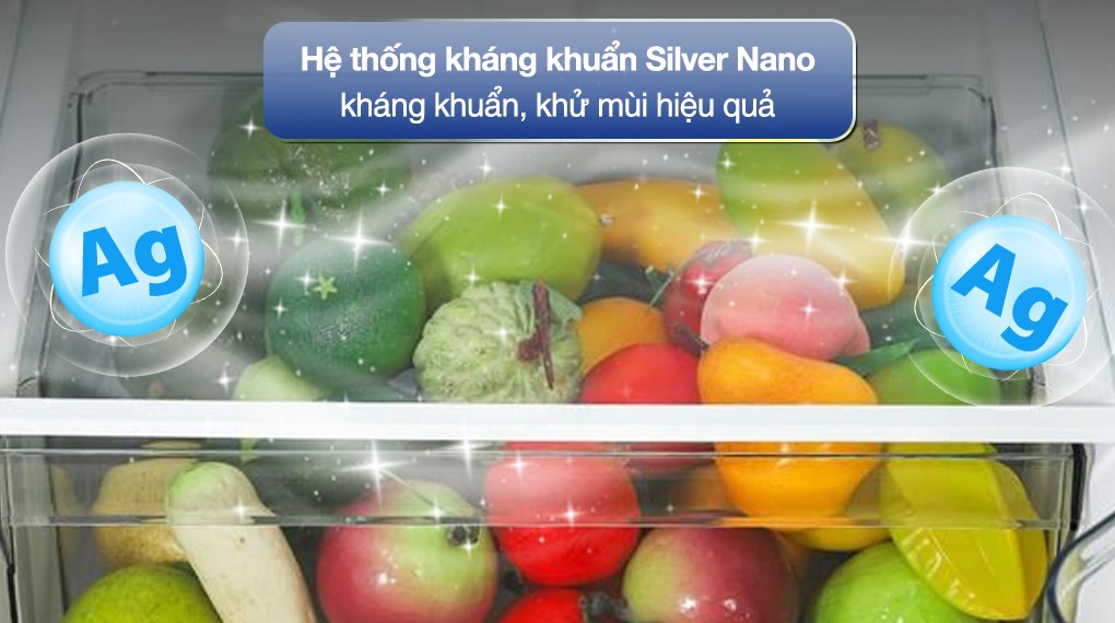 Tủ trang bị hệ thống kháng khuẩn Silver Nano hỗ trợ hạn chế vi khuẩn và mùi khó chịu phát sinh trong khoang tủ. Nhờ đó, không khí bên trong được duy trì sạch hơn, giảm tình trạng lẫn mùi giữa các nhóm thực phẩm như đồ tươi sống và món đã chế biến. Khi kết hợp thói quen bảo quản kín và vệ sinh định kỳ, khoang tủ sẽ giữ được sự thông thoáng và giúp thực phẩm giữ hương vị tự nhiên tốt hơn.