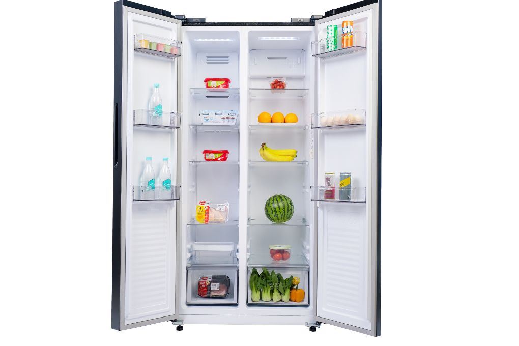 Kiểu tủ Side by Side 2 cánh với thiết kế mở rộng theo chiều ngang, giúp phân chia ngăn đông và ngăn mát rõ ràng, thuận tiện khi sử dụng và sắp xếp thực phẩm.