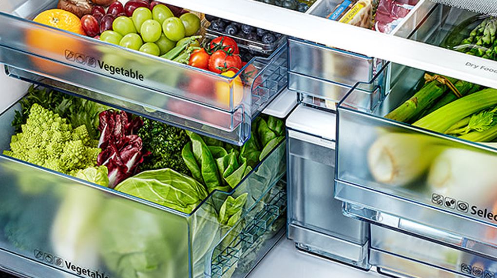 Khu vực hộc rau củ được tách riêng, tạo không gian bảo quản ổn định cho trái cây và rau xanh. Thiết kế dạng kéo giúp thao tác lấy thực phẩm thuận tiện, đồng thời hạn chế hơi lạnh thất thoát khi chỉ cần mở đúng khu vực cần dùng.