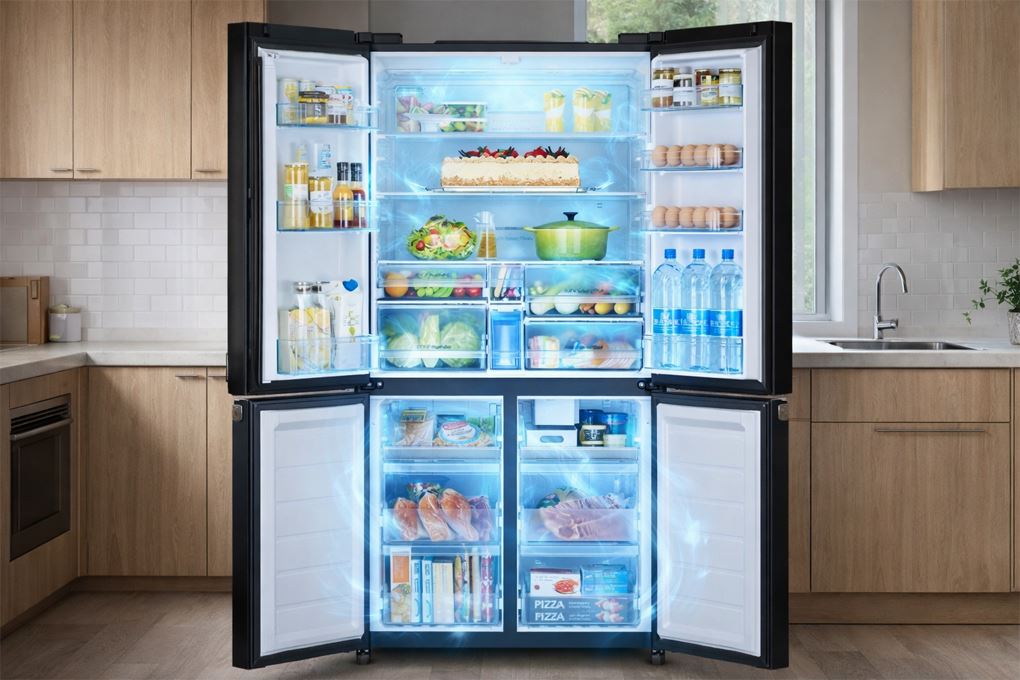 Hệ thống làm lạnh quạt kép cho phép từng khu vực trong tủ nhận luồng khí lạnh riêng biệt, hạn chế sự chênh lệch nhiệt độ giữa các ngăn. Nhờ đó, thực phẩm ở các vị trí khác nhau vẫn được bảo quản trong điều kiện ổn định hơn, đặc biệt khi tủ chứa nhiều đồ.
