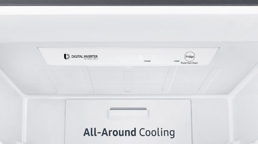 Công nghệ làm lạnh All-around Cooling của tủ lạnh là công nghệ làm lạnh vòm, giúp luồng khí lạnh lan tỏa đều khắp các ngăn, hỗ trợ duy trì nhiệt độ ổn định cho thực phẩm ở mọi vị trí trong tủ.