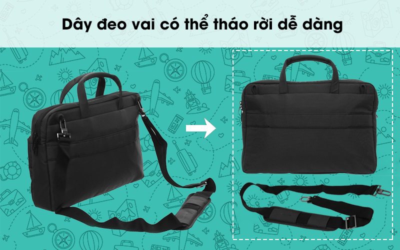 Thiết kế gồm một ngăn chính được trang bị hệ thống chống sốc, chứa được laptop 13.3 inch và có thể chứa thêm một số vật dụng khác như tablet và tài liệu. Ngăn phụ được thiết kế ở mặt trước, có thể sử dụng đựng các loại phụ kiện cần thiết như pin sạc dự phòng hay cáp sạc. Ngoài ra, còn có thêm một túi zip bên ngoài có thể đựng thêm đồ dùng, cho không gian chứa đồ rộng hơn.