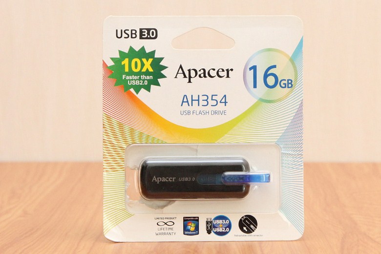 Apacer là hãng điện tử đến từ Đài Loan có nhiều kinh nghiệm trong việc thiết kế các linh kiện máy tính. Sản phẩm do hãng sản xuất thường chú trọng đến dáng vẻ bên ngoài sao cho thật bắt mắt và đa dạng về mẫu mã. USB 16 GB 3.0 Apacer AH354 đã đáp ứng được nhu cầu thị hiếu của khách hàng với kiểu dáng được thiết kế độc đáo, khác biệt so với những sản phẩm khác trên thị trường. Phần nhựa trong ở đuôi của USB có độ đàn hồi. Có khả năng kéo dãn tạo nên chiếc móc khóa rất đẹp mắt và thời trang với màu xanh dương bắt mắt.