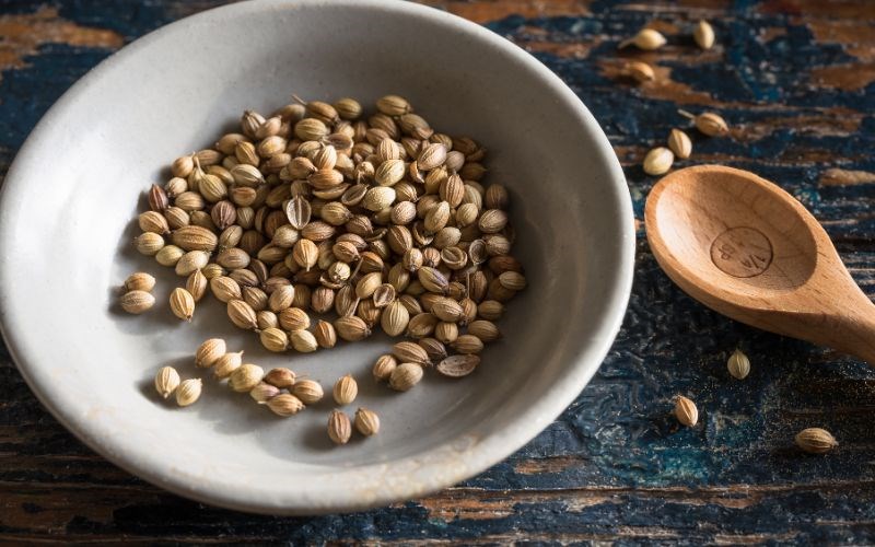 Hạt mùi, hay còn gọi là hạt ngò rí, là những hạt tròn nhỏ, màu nâu vàng, có mùi thơm dịu nhẹ và hơi the. Hạt mùi thường được rang sơ trước khi cho vào nồi phở để hương thơm được phát huy tối đa.