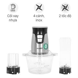 Máy xay thịt Magic AC-15 với cối thủy tinh có dung tích 2 lít cùng công suất 300W, 2 tốc độ xay khác nhau và lưỡi dao 4 cánh sắc bén giúp bạn có thể xay nhuyễn bất cứ loại thịt cá, đậu, hạt.