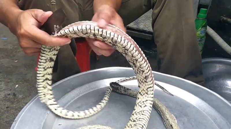 Đầu tiên, rắn mua về bạn tiến hành trụng sơ với nước sôi khoảng 3 - 5 phút, tắt bếp, nhanh tay vớt rắn ra để nguội 1 - 2 phút. Bạn tiếp tục dùng dao cạo sạch vảy, đồng thời loại bỏ nốt phần ruột còn sót lại bên trong, đem rửa lại vài lần với nước sạch, để ráo.