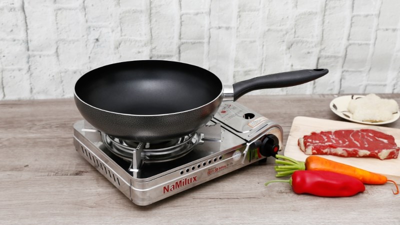 Ngoài ra, chảo chống dính đi kèm giúp bạn đa dạng hoá bữa ăn, giúp việc chiên xào dễ dàng hơn. Chảo bằng hợp kim nhôm truyền nhiệt nhanh, tỏa nhiệt đều, nấu thức ăn chín nhanh, đặc biệt tiết kiệm gas khi nấu.