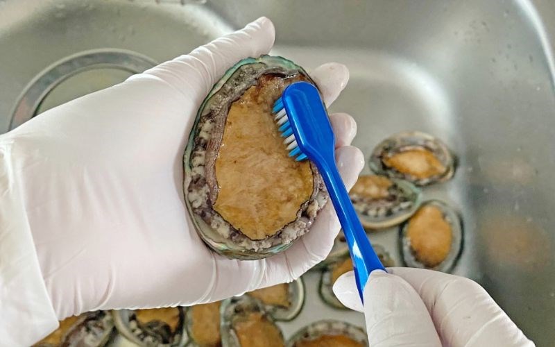 Sơ chế bào ngư đúng cách sẽ giúp loại bỏ tạp chất và giữ được hương vị thơm ngon đặc trưng của thịt bào ngư. Đầu tiên, dùng bàn chải chà sạch phần vỏ bên ngoài dưới vòi nước chảy. Tiếp theo, dùng muỗng hoặc dao nhỏ tách phần thịt bào ngư ra khỏi vỏ.